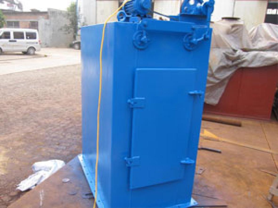 UF型單機(jī)布袋除塵器是含塵氣體由進(jìn)氣口進(jìn)入灰斗或通過花板孔兩種方式進(jìn)除塵濾袋。含塵氣體透過除塵濾袋變?yōu)閮魵猓M(jìn)入箱體,再經(jīng)箱體上部排放口,由風(fēng)機(jī)排走。粉塵積附在除塵濾袋內(nèi)表面且不斷增加,使袋式除塵器的阻力不斷上升,當(dāng)阻力上升到約1500pa時(shí),為了使袋式除塵器繼續(xù)工作,需定期清除濾袋上的粉塵,具體清灰時(shí),首選關(guān)閉頂上風(fēng)機(jī),啟動(dòng)搖動(dòng)電機(jī),由于搖動(dòng)電機(jī)上偏心作用,帶動(dòng)連桿使搖動(dòng)軸左右來回轉(zhuǎn)動(dòng)。除塵濾袋就呈波紋狀態(tài),使粉塵掉下,卸出待清灰完即停止搖動(dòng)電機(jī),重新啟動(dòng)風(fēng)機(jī),使袋式除塵器重新開始工作,上述動(dòng)作是通過控制儀來自動(dòng)控制完成的。